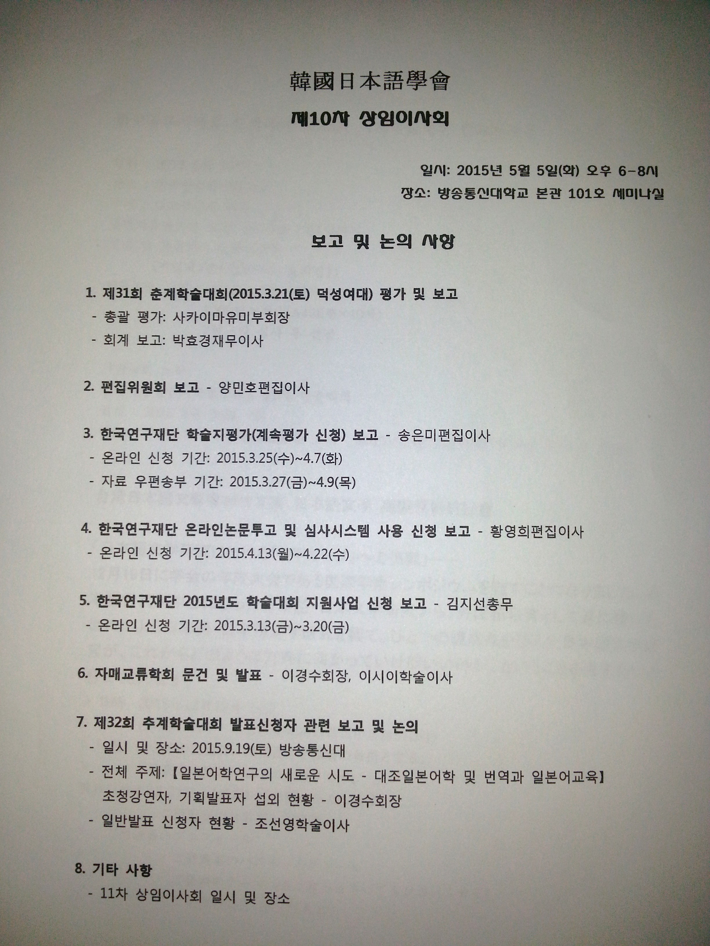 (8대 10차 이사회 동정) 상임이사회 개최 (in 방송통신대_20150505)